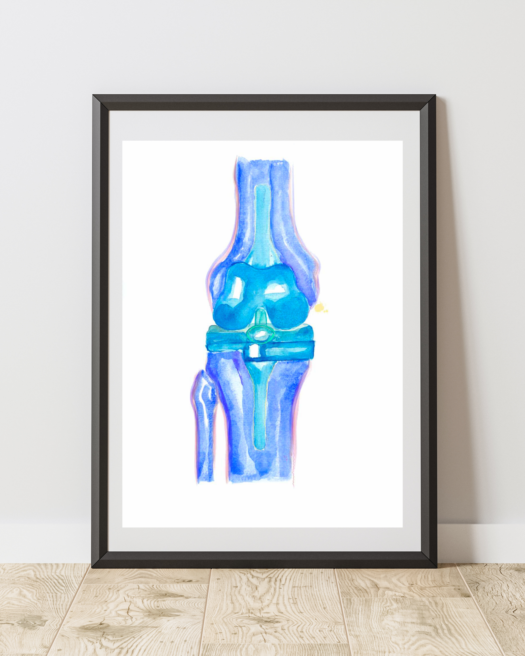 A print of my watercolor painting, illustrating a knee replacement. A modern, energetic art print that I think would be perfect in orthopedic surgery and physical therapy offices.