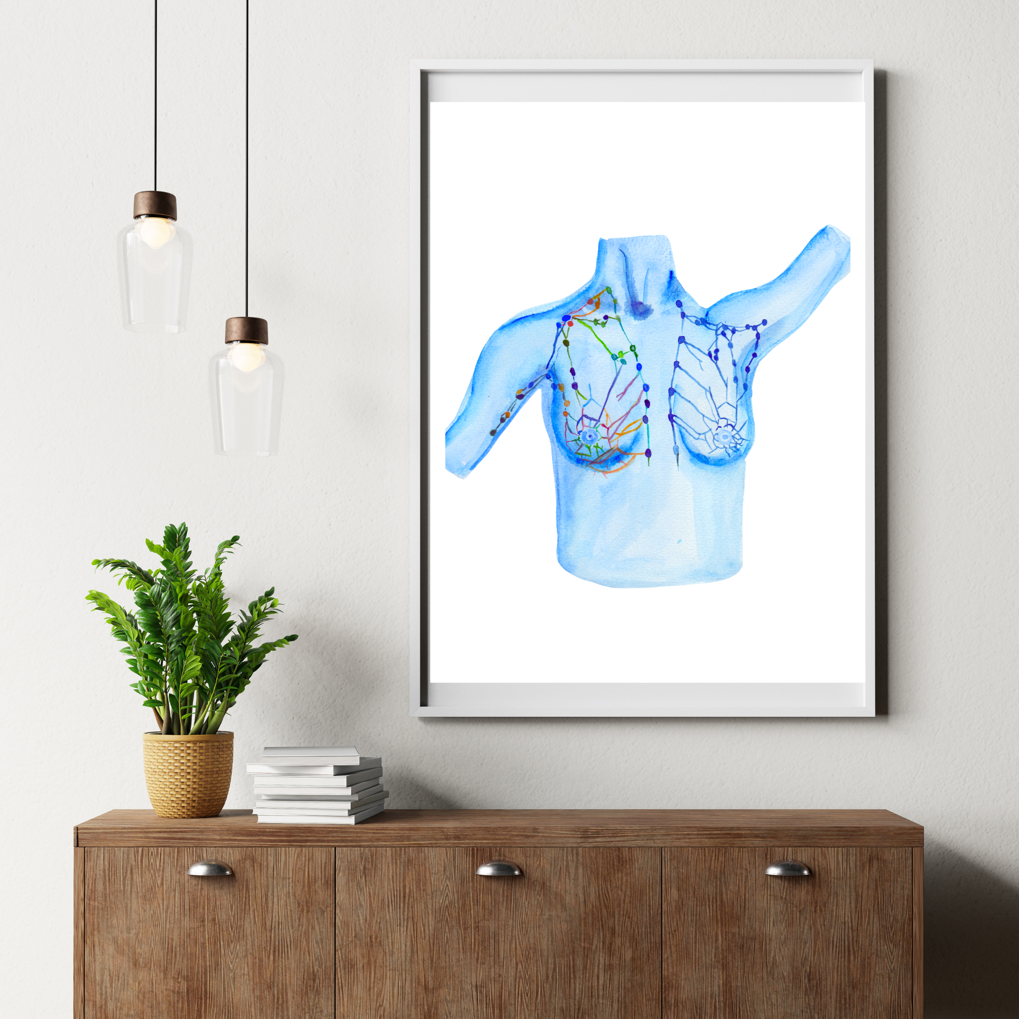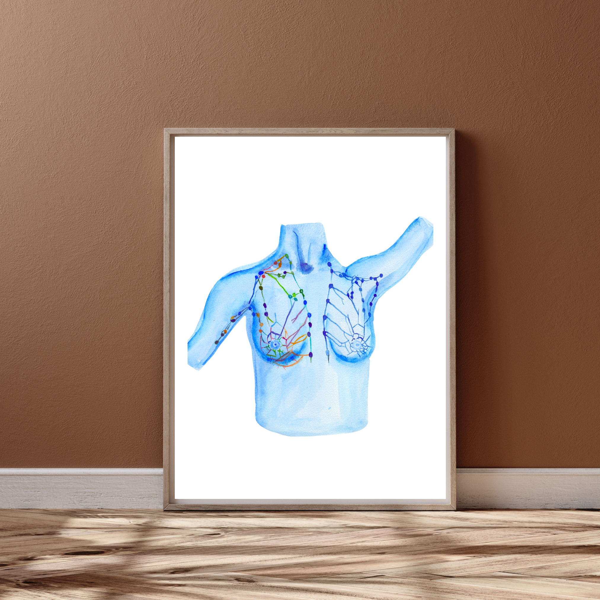 This is a print of my watercolor painting illustrating the lymph drainage of the breast.