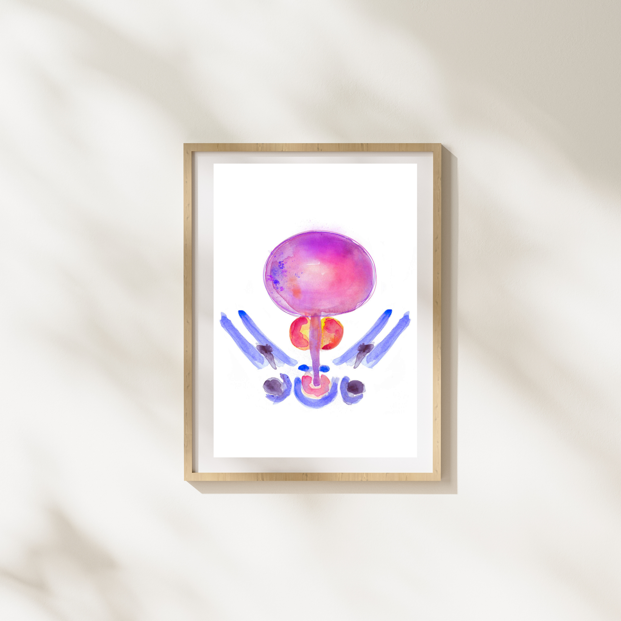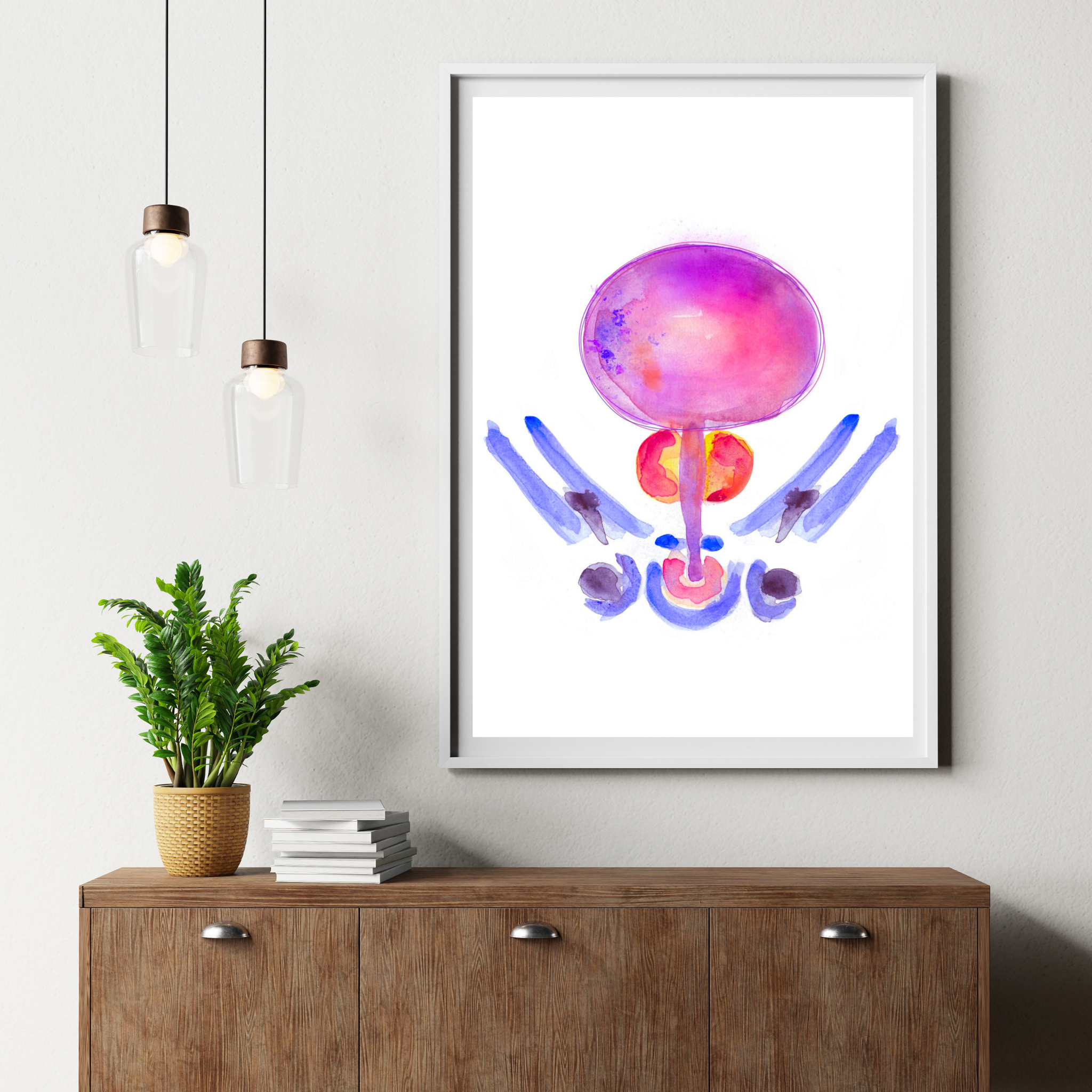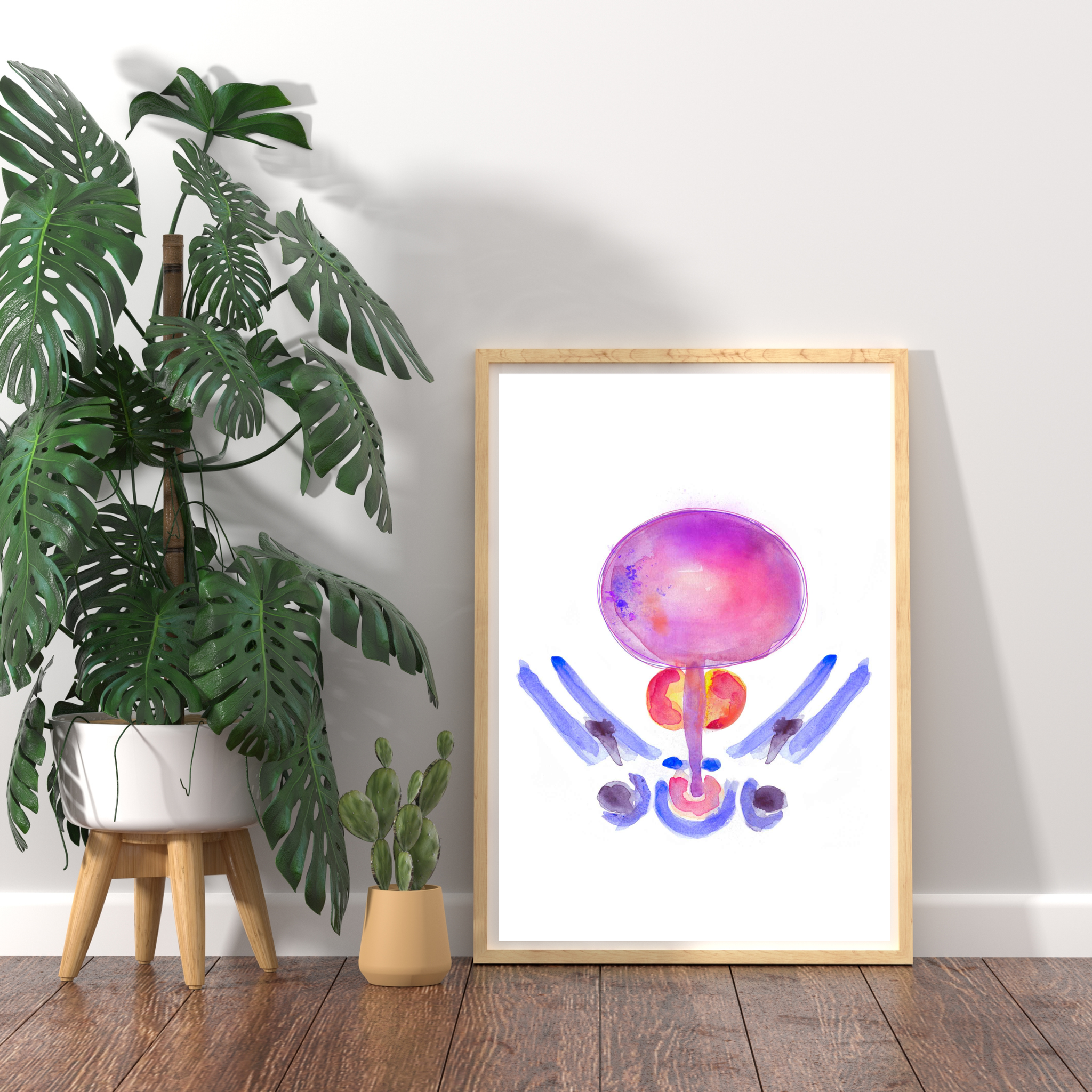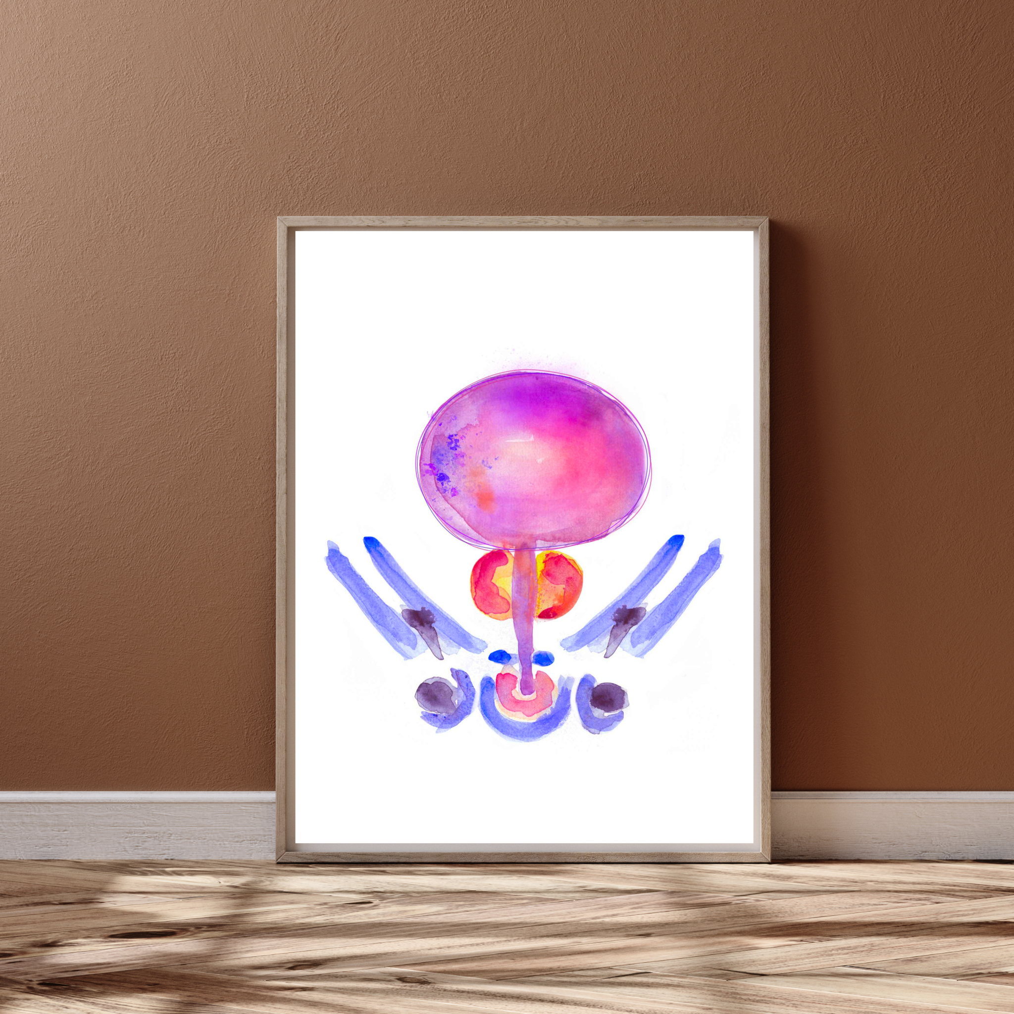 This is a print of my watercolor bladder and prostate cross-section painting.