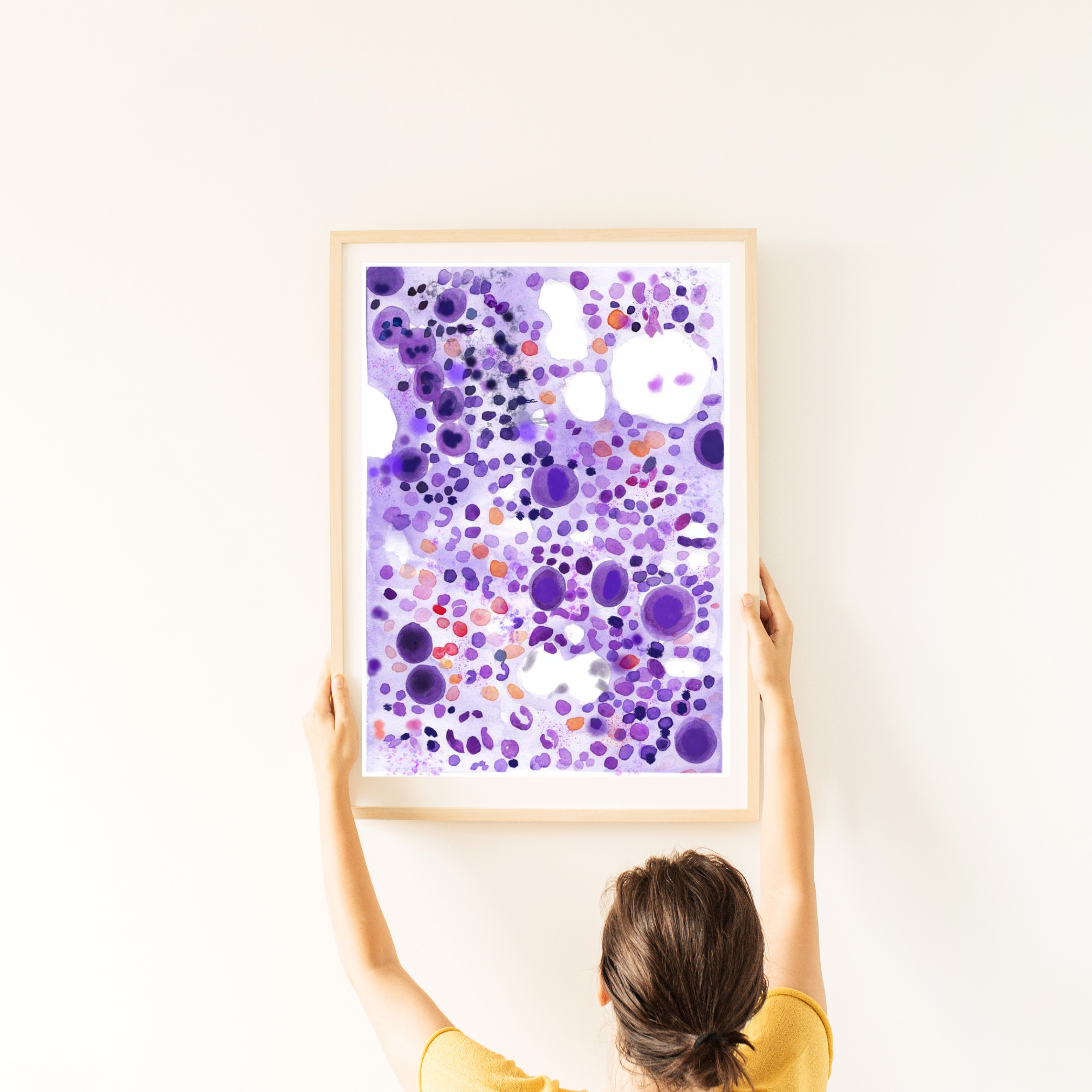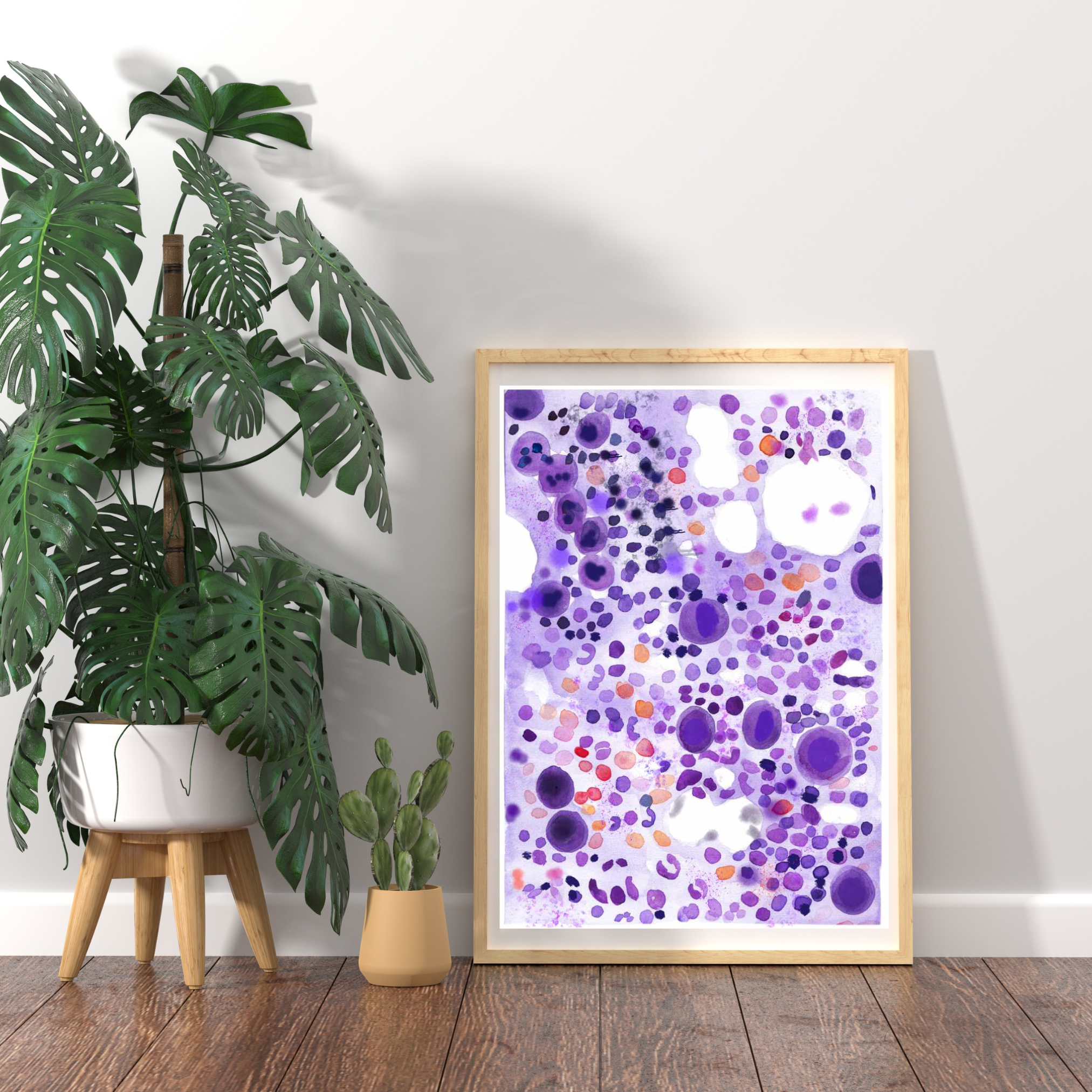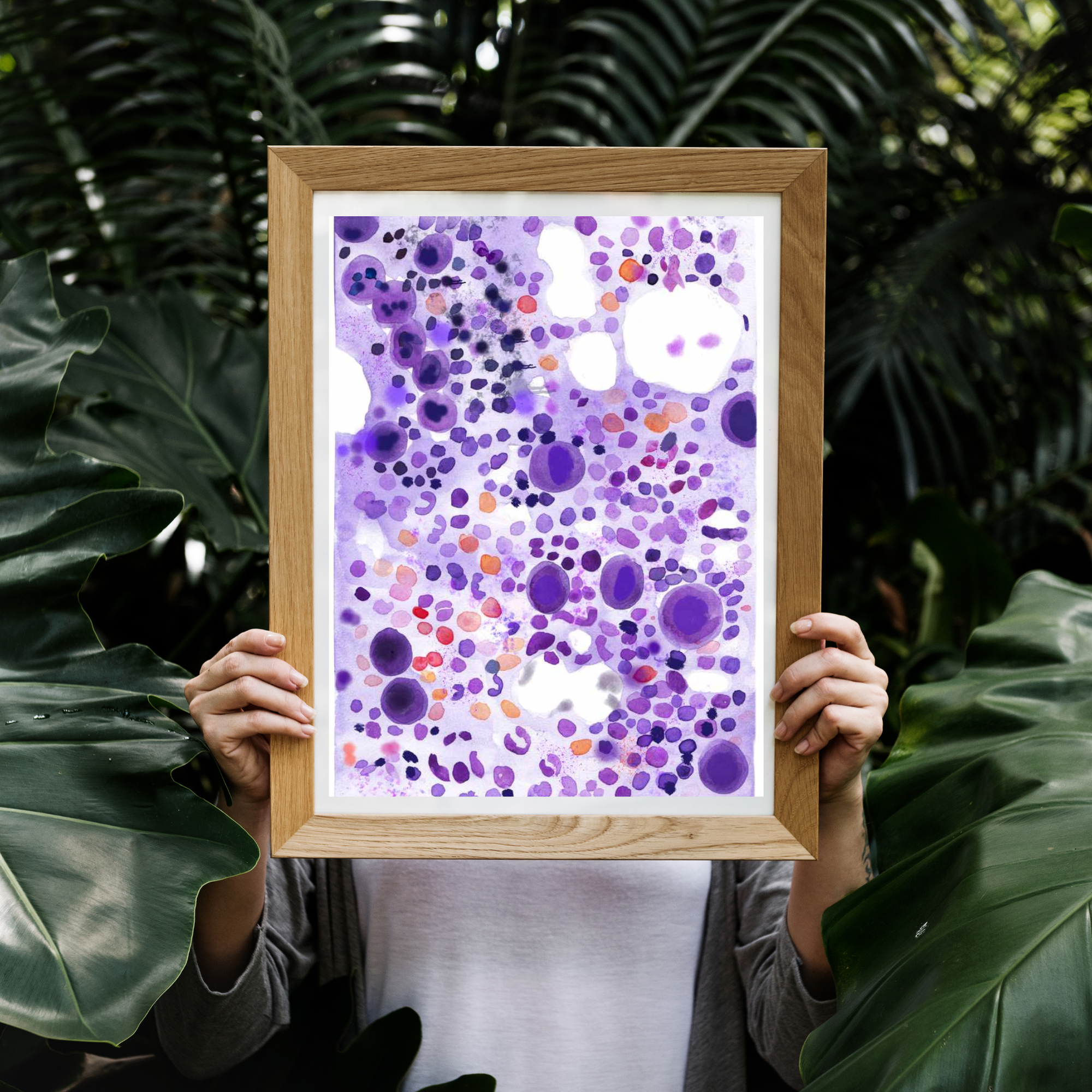 This is a print of my watercolor painting of the bone marrow aspirate in the case of idiopathic thrombocytopaenia.